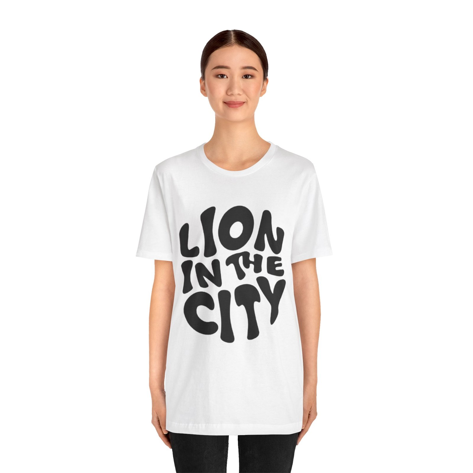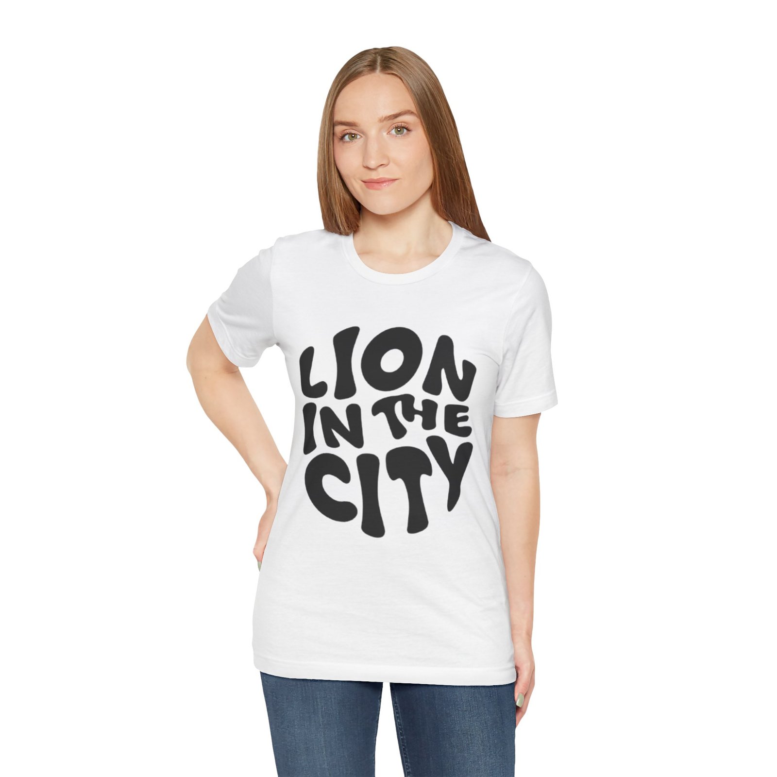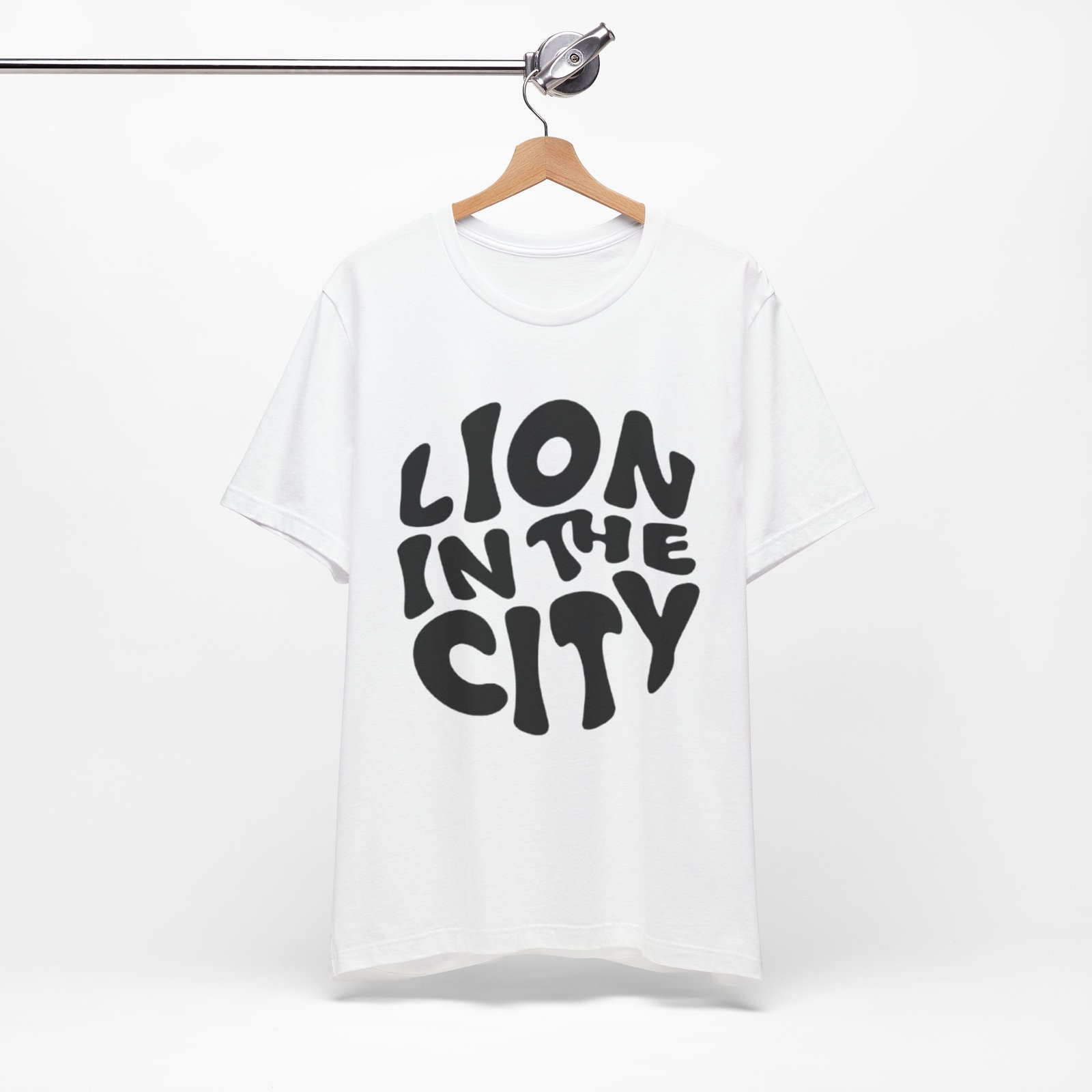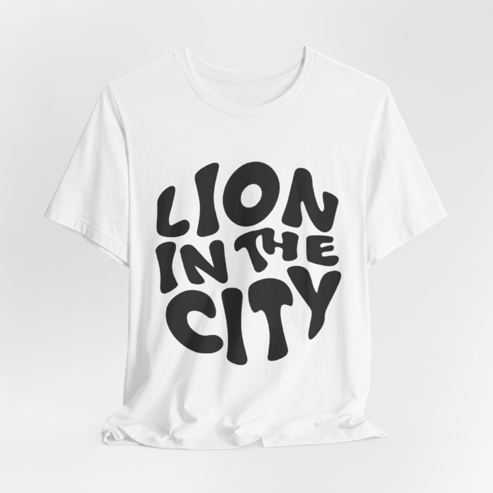 This lightweight jersey tee carries an urban-roar energy: chunky, hand-lettered type reads “LION IN THE CITY” across the chest in a bold, slightly rounded silhouette. It’s breathable and soft against skin thanks to 100% Airlume combed and ring-spun cotton, with a classic crew neckline and a retail fit that layers easily under jackets or stands alone. Thoughtful construction — side seams, shoulder tape, and a ribbed knit collar — keeps the shape crisp through repeated wear. The graphic is applied with modern sleeve-and-label-friendly printing methods for clear, solid coverage. Wear it when you want to feel quietly confident, a little wild, and unmistakably urban.